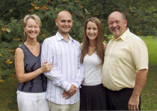 I have attached a recent family photo to confirm my current hairline and belt size (l-r, Arlene (wife), Matthew (son), Christine (daughter), John (self)). Also a relatively recent photo of me with guess who. Plus a university era photo of me with my then girlfriend, now wife.