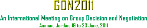The 12th international annual meeting of the Group Decision and Negotiation conference, GDN2011, will take place in Amman, Jordan from June 19 to 23, 2011. This joint conference of the INFORMS section on Group Decision and Negotiation (GDN), the EURO Working Group on Decision and Negotiation Support, and the EURO Working Group on Decision Support Systems provides a forum for those working in the field, bringing together researchers from Africa, the Americas, Asia, Europe and Oceania.GDN series of conferences have provided a stimulating environment for the dissemination of state-of-the-art knowledge in the field of group decision and negotiation, allowing for intense discussions among participants and the exchange of ideas and critical comments for further improvement.