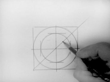 So estimate 1/3 distance along the receding axis. The centre of the back face is located 1/3 distance behind the center of the front face.