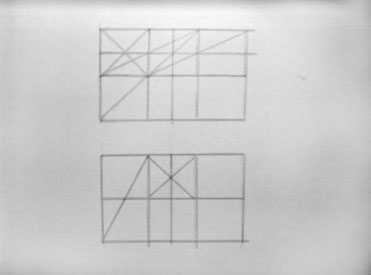 To find half of 3 units, first locate the center point of the middle square. A vertical line through the center point gives a good approximation for the half point of the 3 units
