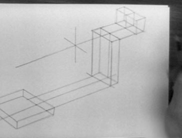 Draw the full disk in front of the back plate. First draw the centre lines of the disk.