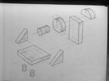 Here is the final exploded pictorial view of the object composed of rectangular and triangular prisms, cylinders of thin air and full and half disks.