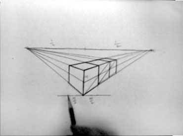 The same method applies on the left side but parallel edges converge to the opposite vanishing point.