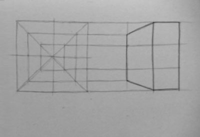 Start darkening some of the outside lines. Next, project lines from the inside square to the side view to obtain the diameter of the drilled hole.