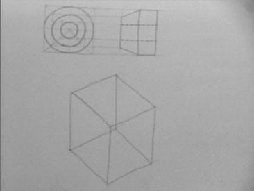 For the pictorial sketch, start by sketching the three dimensional enclosing box for the object