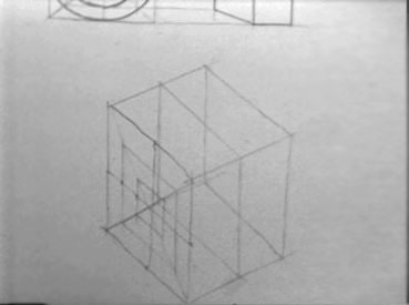 The front face of the box is divided into 3 concentric squares in the same manner as the top view.