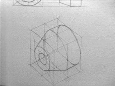 Sketch straight lines tangent to the ellipses to complete the pictorial.