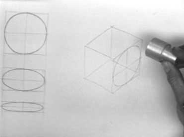 We will turn this enclosing cube into a cylinder. We need to draw another ellipse contained in the back face