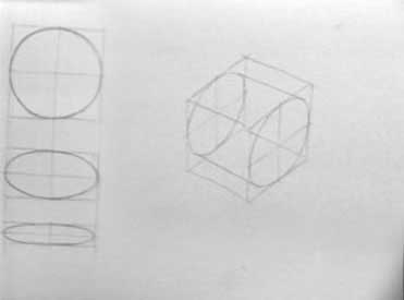 Draw straight lines tangent to the major ends of the ellipses to complete the cylinder sketch.