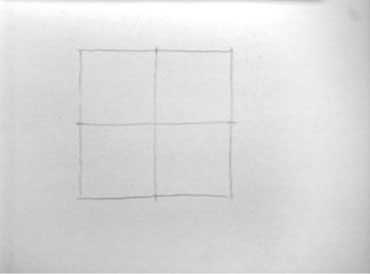 The circle is contained within this square. Next find the midpoint of the sides and draw in the centre lines.