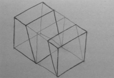 Imagine unwanted cut portions to be removed and darken the remaining visible edges.