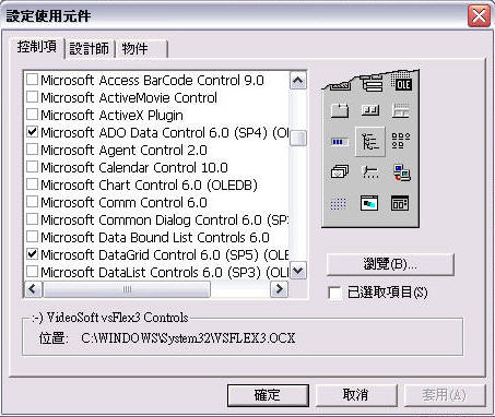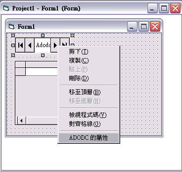 我用ado data control 和 datagrid 做示範,先加入這些控制項。