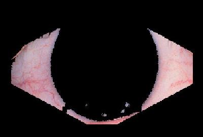 The current method for isolating the shape used for redness evaluation is to use simple colour thresholding to locate the iris, and geometry to remove the eyelids and fold. An example of the desired output is shown below in Figure 6. This shape was chosen because is it the closest approximation to what would be seen by a human observer grading the eye. In theory it will minimize the amount of information lost.
